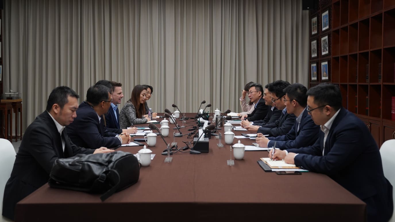 2023年4月7日,张晓强常务副理事长在中心会见福特公司全球执行副总裁兼首席政务官柯立(Steven Corley)一行。