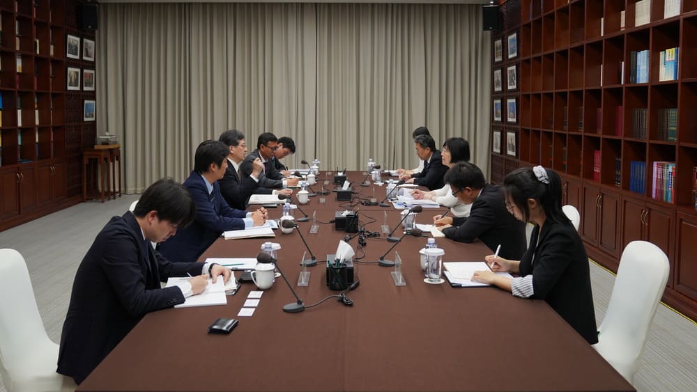 国经中心国际交流合作部部长许朝友、宏观经济研究部副部长刘向东和世界经济研究部国际经贸处处长逯新红,JBIC北京代表处首席代表北川善彦和人事室人事课副调查役渡边航平等陪同会见。
