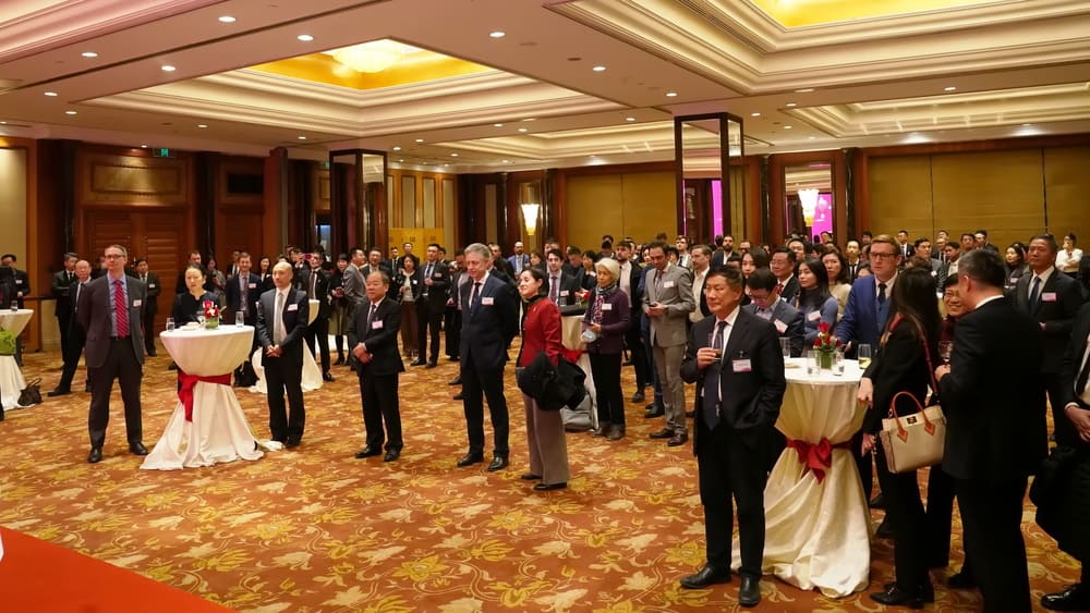 澳大利亚驻华大使吉思德、以色列驻华大使潘绮瑞、葡萄牙驻华大使保罗·纳西门托等近40个国家驻华使节、国际机构和外国商协会及中国政府有关部委、企业界和智库代表近200人出席了招待会。现场还展示了民乐演奏等中国传统文化,与会代表欢聚一堂,共商合作、共叙友谊,招待会在祥和、喜悦的气氛中结束。