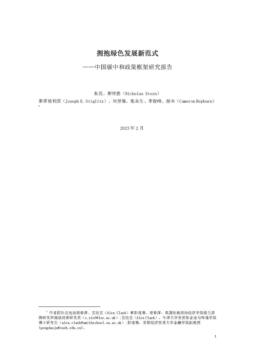 拥抱绿色发展新范式——中国碳中和政策框架研究报告