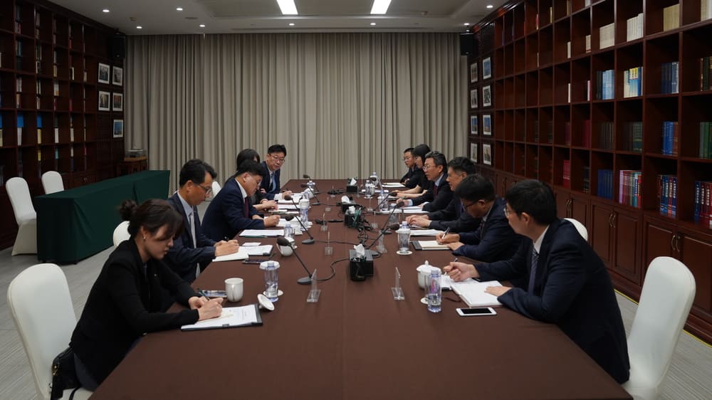 中心国际交流合作部部长许朝友、宏观经济研究部副部长刘向东,韩国贸易协会北京代表处首席代表沈允燮等参加了会见。